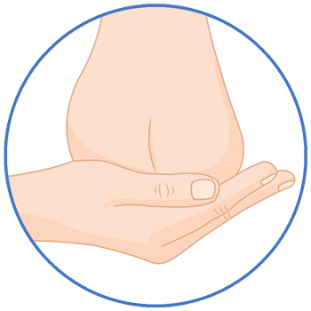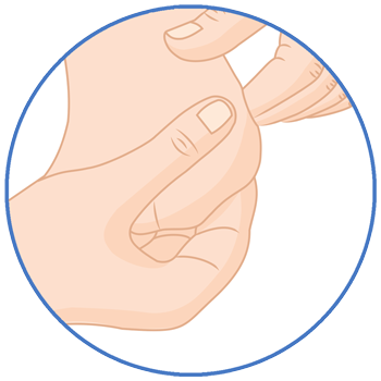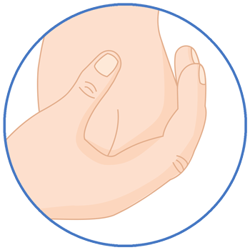 Roll the testicle between your thumb and fingers to explore for lumps.