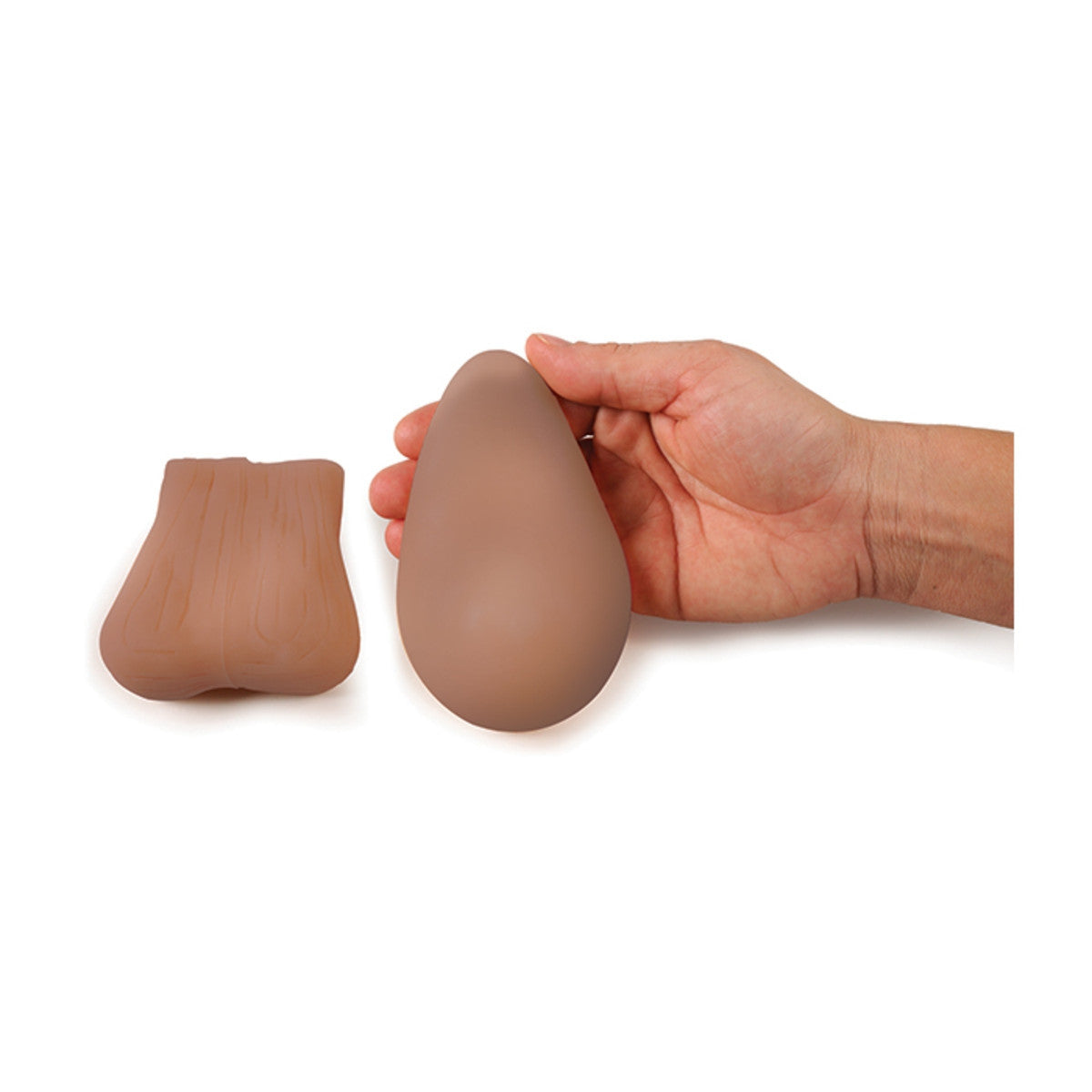 This kit contains a teen BSE model and TSE model to teach young people the importance of the early detection of cancer. The teen BSE model contains lumps in a variety of sizes. The TSE model contains two lumps in each testicle.Each self examination model is made of soft, durable synthetic tissue replicating the feeling of real skin, and comes with a carrying case. Available in a light and dark skin tone.